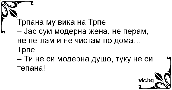 – Јас сум модерна жена, не перам, не пеглам и не чистам по дома…