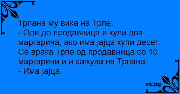 Се враќа Трпе од продавница со 10 маргарини и и кажува на Трпана: