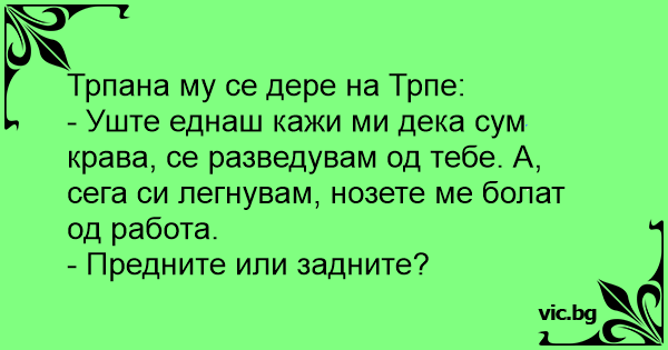 - Уште еднаш кажи ми дека сум крава, се разведувам од тебе. А, сега си легнувам, нозете ме болат од работа.