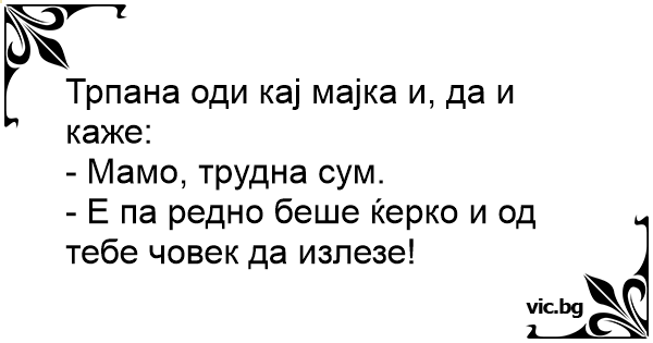 Трпана оди кај мајка и, да и каже: