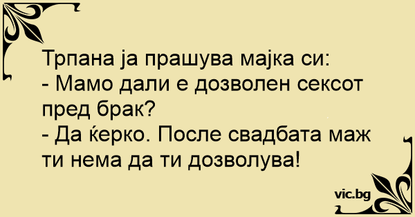 - Да ќерко. После свадбата маж ти нема да ти дозволува!
