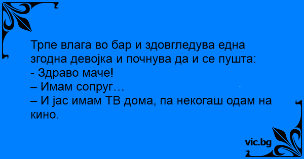 И се пуштам на една девојка во бар и ми вели :