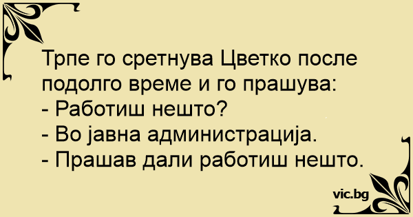 Трпе го сретнува Цветко после подолго време и го прашува: