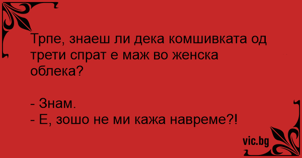 Трпе, знаеш ли дека комшивката од трети спрат е маж во женска облека?