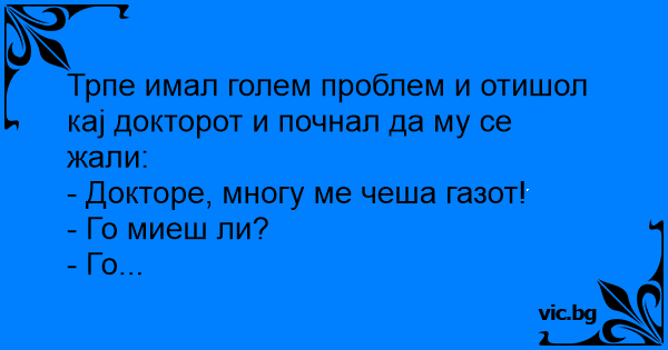 Трпе имал голем проблем и отишол кај докторот и почнал да му се жали: