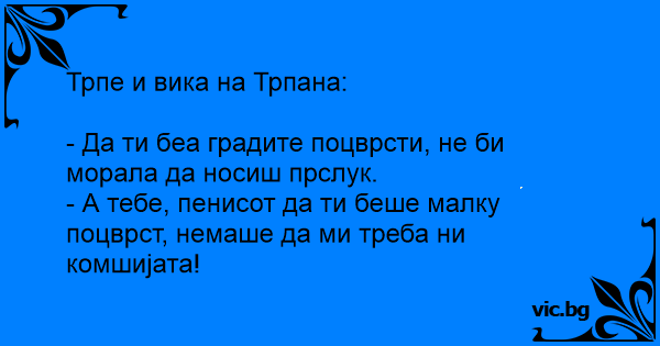 - Да ти беа градите поцврсти, не би морала да носиш прслук. - А тебе, пенисот да ти беше малку поцврст, немаше да ми треба ни комшијата!