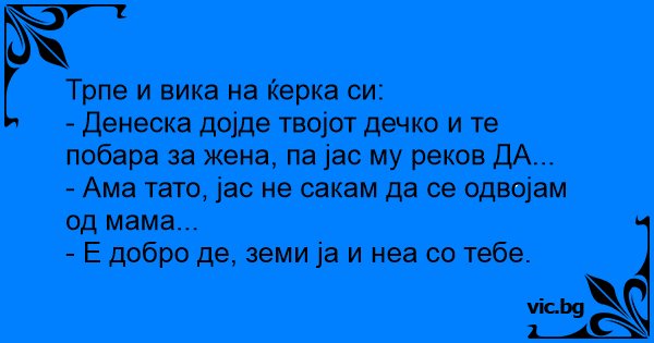 - Денеска дојдe твојот дечко и те побара за жена, па јас му реков ДА...