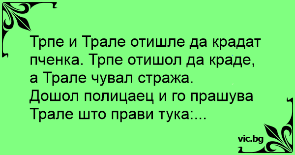 Трпе и Трале отишле да крадат пченка. Трпе отишол да краде, а Трале чувал стража.
