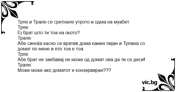 Трпе и Трале се сретнале утрото и одма на муабет.