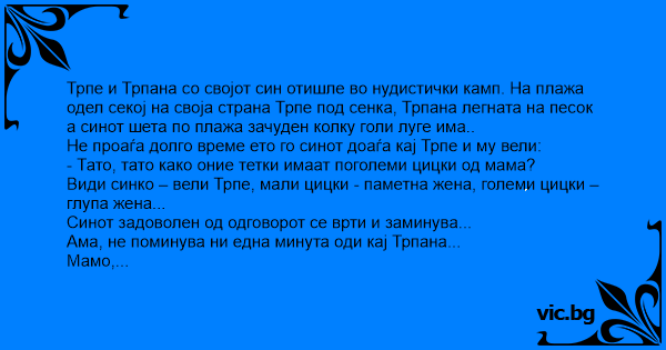 Види синко – вели Трпе, мали цицки - паметна жена, големи цицки – глупа жена...