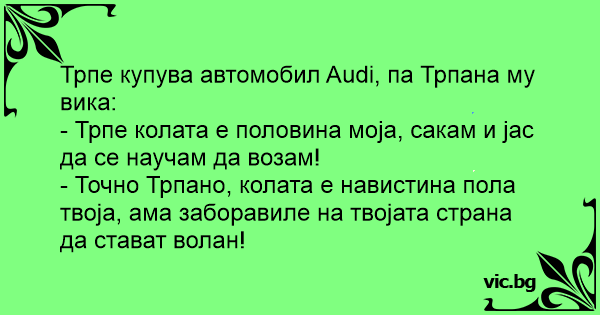 Трпе купува автомобил Audi, па Трпана му вика: