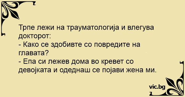 Трпе лежи на трауматологија и влегува докторот: