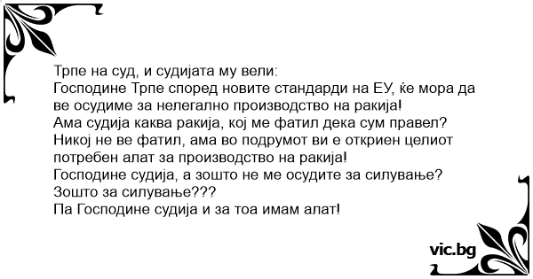Господине Трпе според новите стандарди на ЕУ, ќе мора да ве осудиме за нелегално производство на ракија!