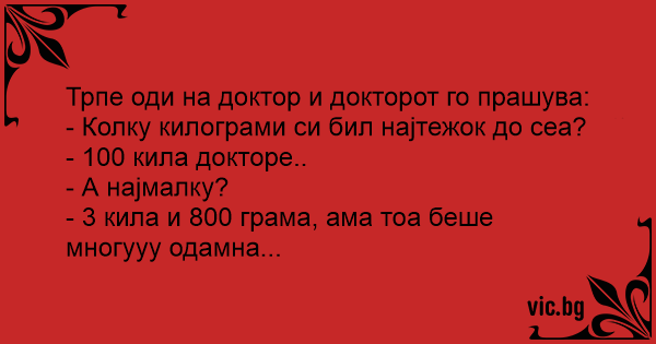 - 3 кила и 800 грама, ама тоа беше многууу одамна...
