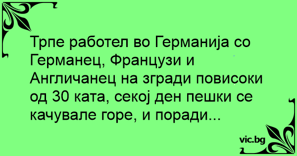 Трпе работел во Германија со Германец, Французи и Англичанец на згради повисоки од 30 ката, секој ден пешки се качувале горе, и поради...