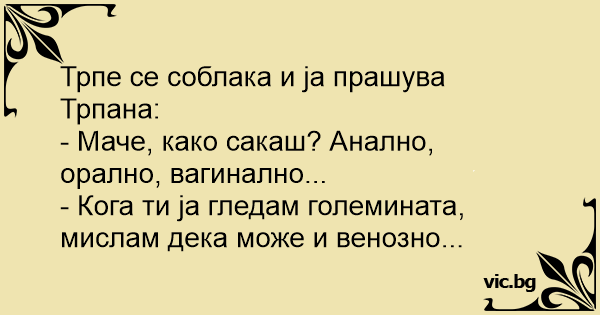 - Маче, како сакаш? Aнaлнo, орално, baгинaлнo...