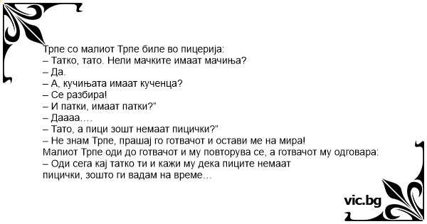 – Не знам Трпе, прашај го готвачот и остави ме на мира!