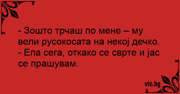 - Зошто трчаш по мене – му вели русокосата на некој дечко.