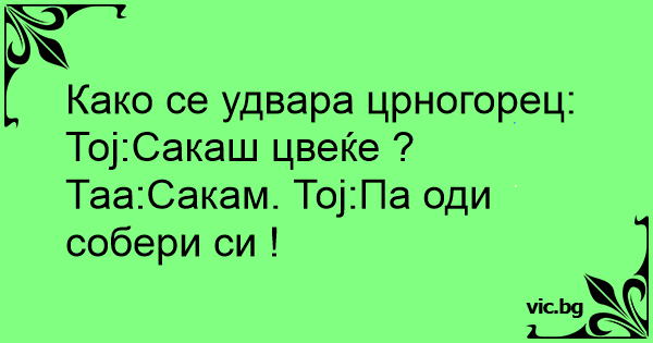 Тој:Сакаш цвеќе ? Таа:Сакам. Тој:Па оди собери си !