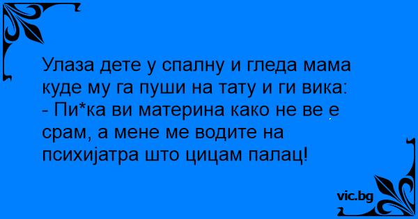 - пичka ви материна како не ве е срам, а мене ме водите на психијатра што цицам палац!