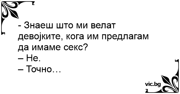 - Знаеш што ми велат девојките, кога им предлагам да имаме cekc?