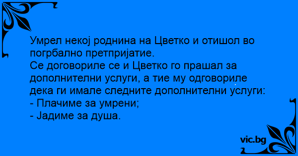Умрел некој роднина на Цветко и отишол во погрбално претпријатие.
