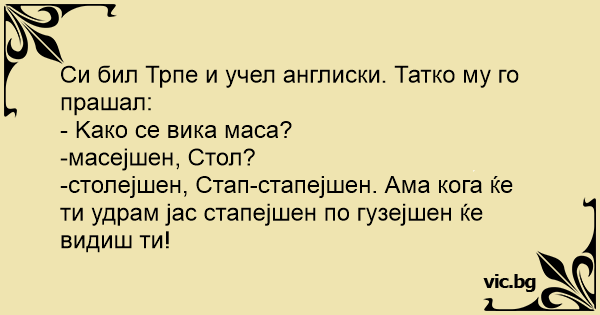 Си бил Трпе и учел англиски. Татко му го прашал: