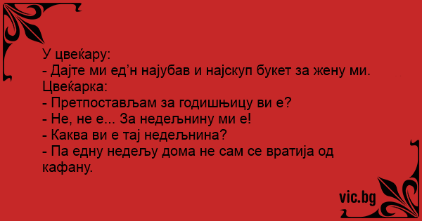 - Дајте ми ед’н најубав и најскуп букет за жену ми.