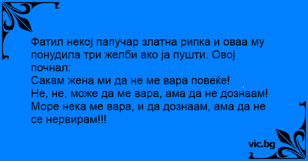 Фатил некој папучар златна рипка и оваа му понудила три желби ако ја пушти. Овој почнал: