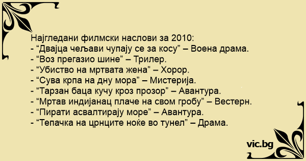 Најгледани филмски наслови за 2010: