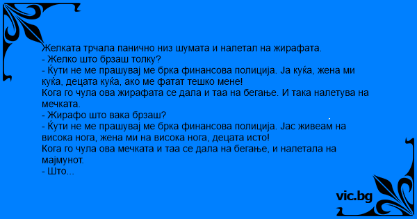Желката трчала панично низ шумата и налетал на жирафата.