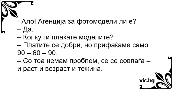 – Платите се добри, но прифаќаме само 90 – 60 – 90.
