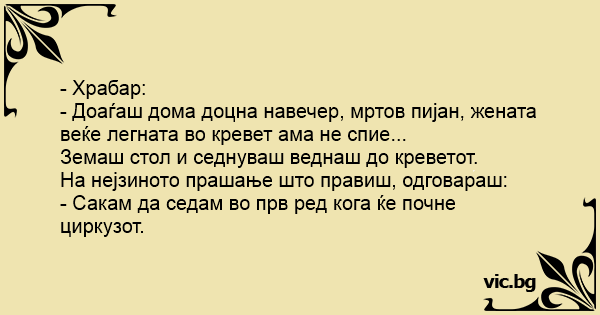 - Доаѓаш дома доцна навечер, мртов пијан, жената веќе легната во кревет ама не спие...