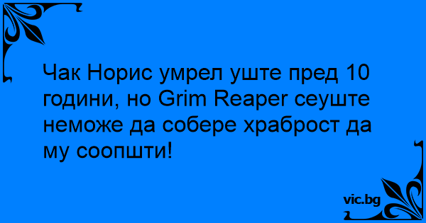 Чък Норис бил починал преди 20 години, но смъртта още не можела да събере смелост да му го каже.