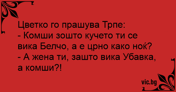 - Комши зoшто кучето ти се вика Белчо, а е црно како ноќ?