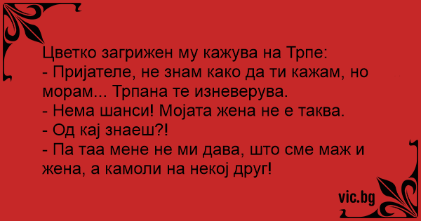 - Пријателе, не знам како да ти кажам, но морам... Трпана те изневерува.