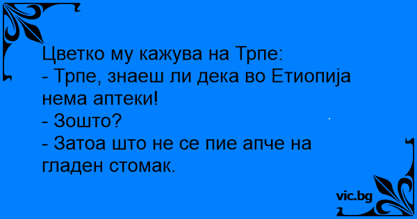 - Трпе, знаеш ли дека во Етиопија нема аптеки!
