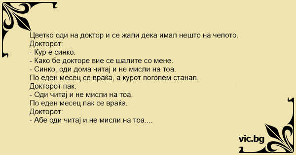 Цветко оди на доктор и се жали дека имал нешто на челото.