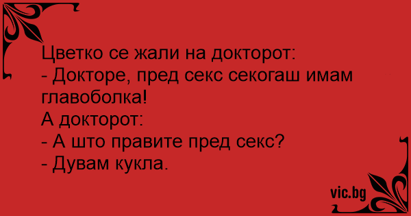 - Докторе, пред cekc секогаш имам главоболка!