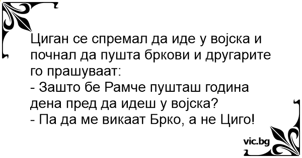 Циган се спремал да иде у војска и почнал да пушта бркови и другарите го прашуваат: