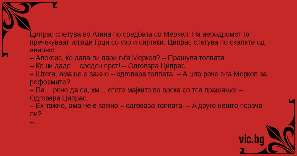 – Штета, ама не е важно – одговара толпата. – А што рече г-ѓа Меркел за реформите?