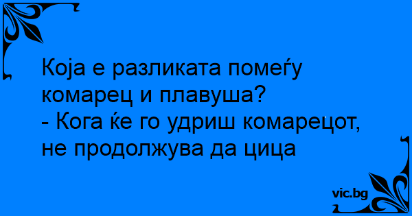 Која е разликата помеѓу плавуша и комарец? Комарецот откако ке го удриш престанува да цица!