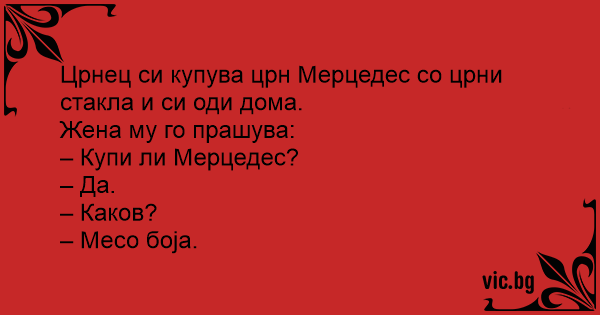 Црнец си купува црн Мерцедес со црни стакла и си оди дома.