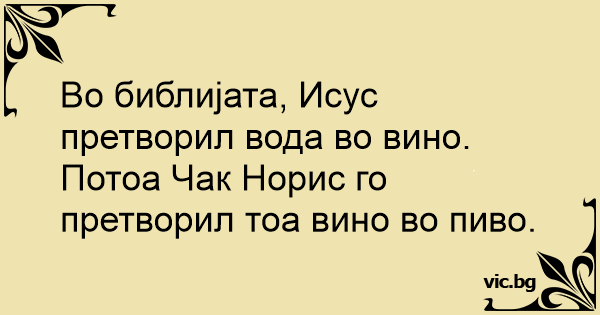 Потоа Чак Норис го претворил тоа вино во пиво.