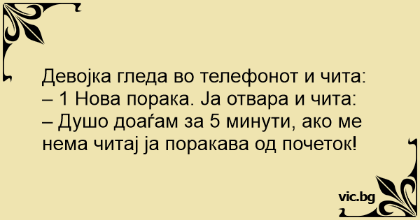 – Душо доаѓам за 5 минути, ако ме нема читај ја поракава од почеток!