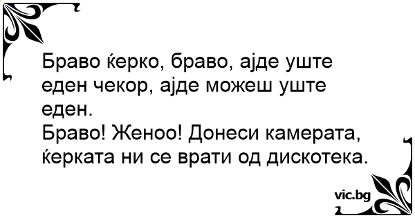 Браво! Женоо! Донеси камерата, ќерката ни се врати од дискотека.