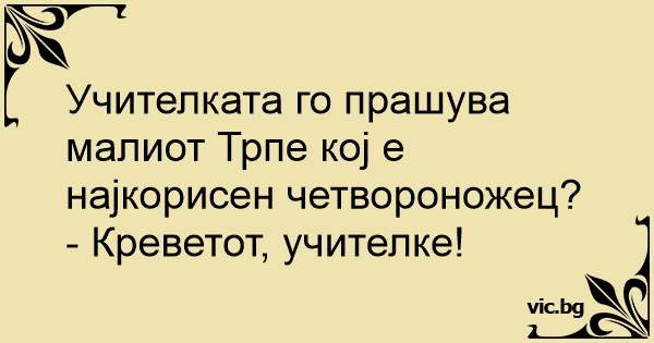 Учителката го прашува малиот Трпе кој е најкорисен четвороножец?