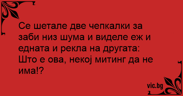 Се шетале две чепкалки за заби низ шума и виделе еж и едната и рекла на другата: