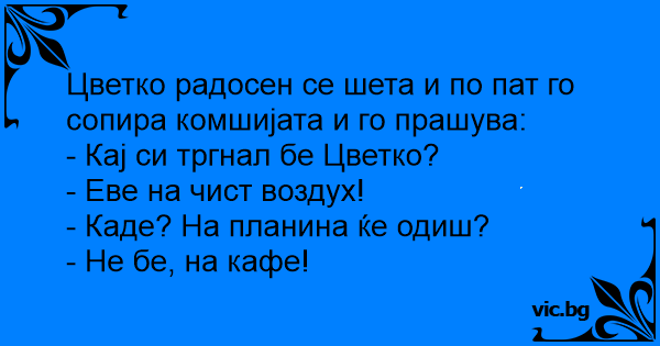 Цветко радосен се шета и по пат го сопира комшијата и го прашува: