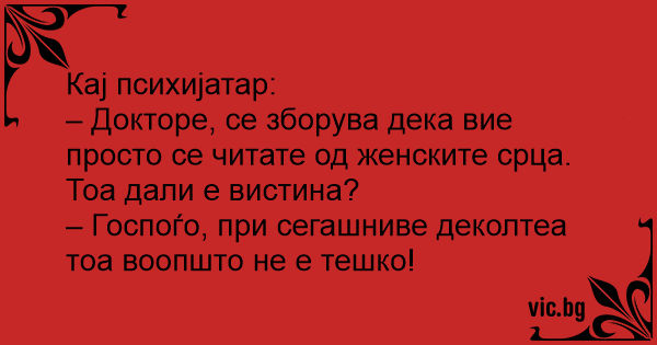 – Докторе, се зборува дека вие просто се читате од женските срца. Тоа дали е вистина?
